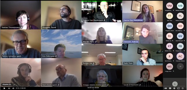 Online vergaderen heeft zo zijn typische folklore: mensen beginnen te praten terwijl de micro niet opstaat. Of je kan merken dat Sarah D’Hertefelt ruggensteun kreeg van een zwarte poes. Vorige keer gunde Tom Teck ons ook onbedoeld even een inkijk in zijn koelkast. Too much information.