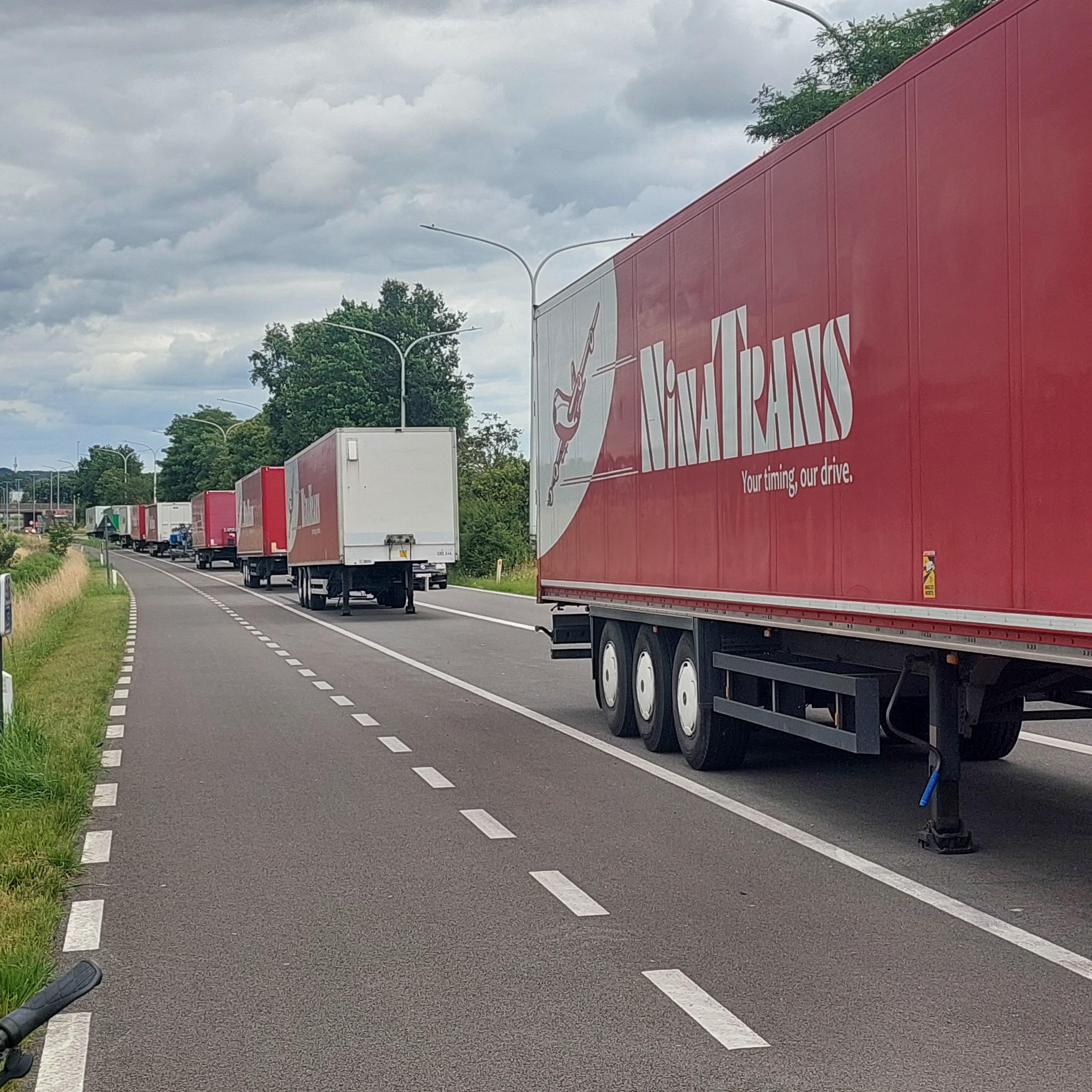 Wie er af en toe in weekends en verlofperiodes voorbij rijdt kent het wel. Langsheen de expressweg vanaf de kruising met de Naamsesteenweg tot de oprit van de E40 staat er vaak een lange serie geparkeerde opleggers. Dikwijls moet je dan tussen een muur van opleggers rijden. En ook langs de andere kant van de expressweg staat er dan vaak zo een lang lint van opleggers.
