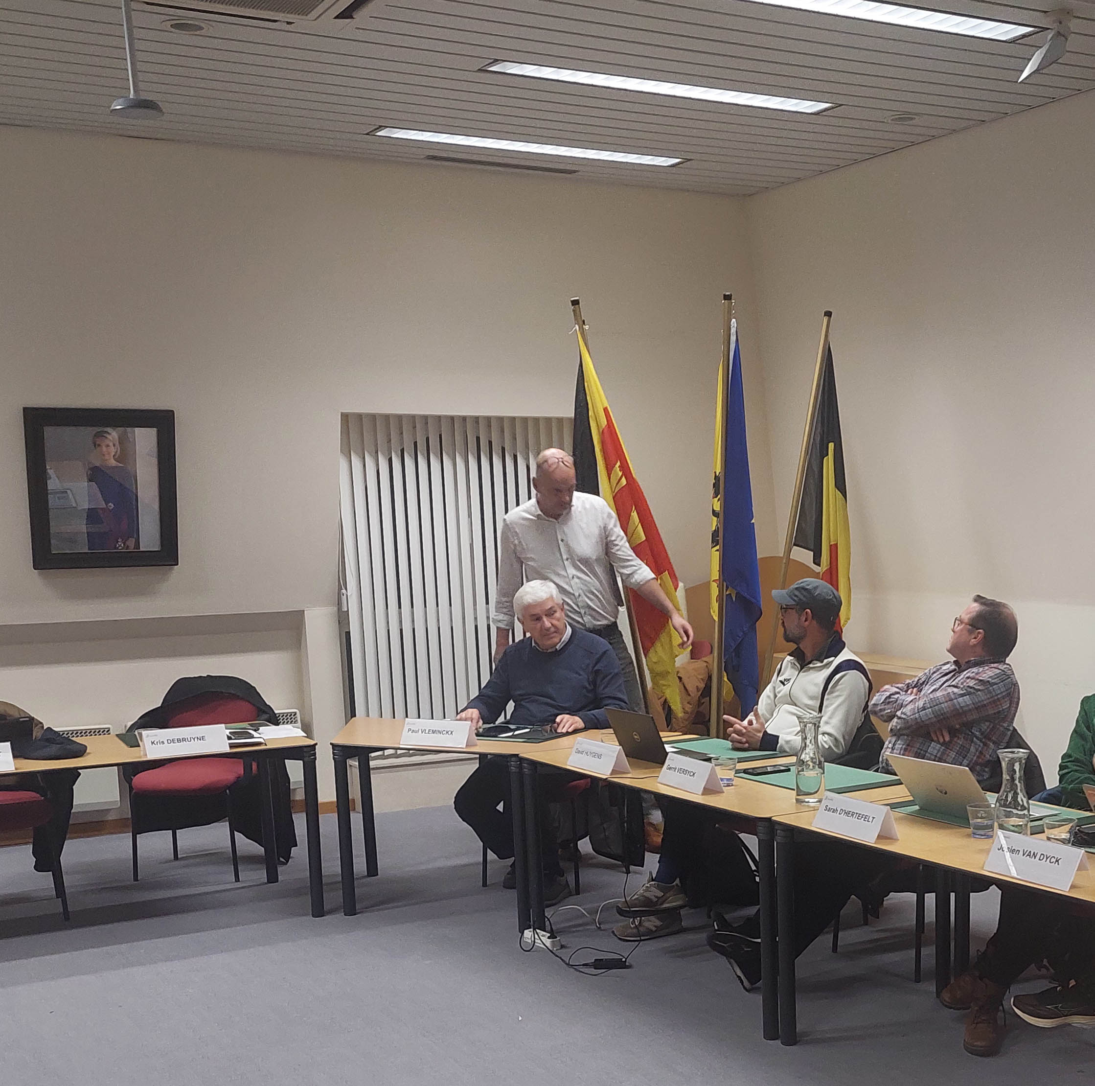 David Huygens van CD&V, niet opnieuw verkozen en niet opnieuw verkiesbaar geweest, vroeg het woord en kondigde aan dat hij zich zou onthouden, net als zijn twee andere CD&V collega’s. Op vraag van Hanna Van Steenkiste die nadrukkelijk het antwoord met haar gsm begon te filmen, verduidelijkte hij dat hij veel werk had, weinig tijd en het dossier te omvangrijk was. Liefst 387 bijlagen die hij niet had kunnen doornemen op zo weinig tijd. Hij had een voorafgaande bespreking in een commissie gewenst, en niet meteen een beslissing.