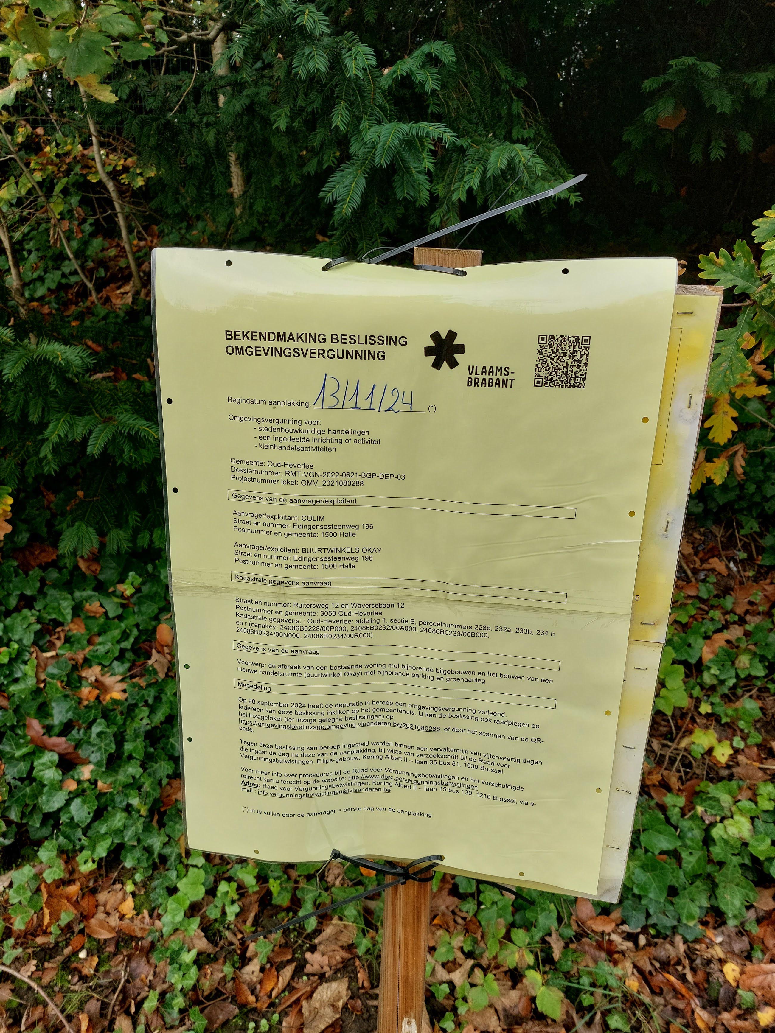 Even herhalen wat voorafging. Colruyt Okay diende na voor-bespreking en onderhandelingen met het gemeentebestuur een aanvraag in om op een terrein aan de overkant van de Ruitersschool in Oud Heverlee een Okay warenhuis te bouwen.