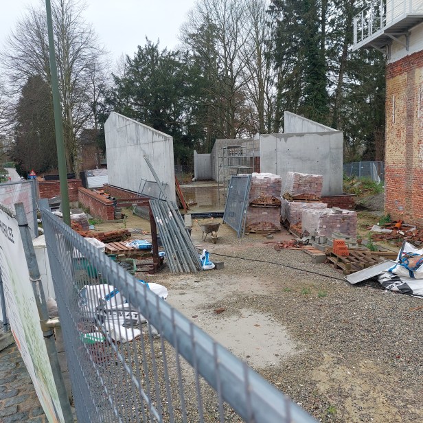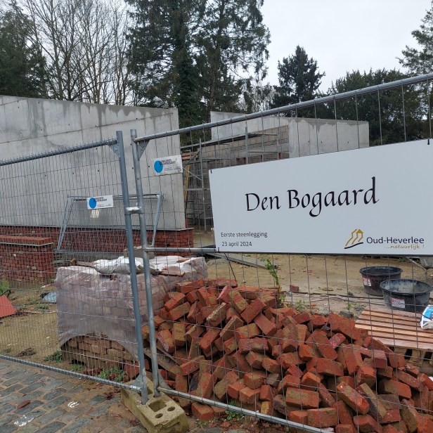 Wie in Oud Heverlee dorp langs komt, merkte het al langer. De werken aan de nieuwe zaal De Boogerd (in Weert ook wel de Merci-Weert geheten) liggen al sinds de zomer stil. De muren staan er al lang, het dak komt er maar niet.