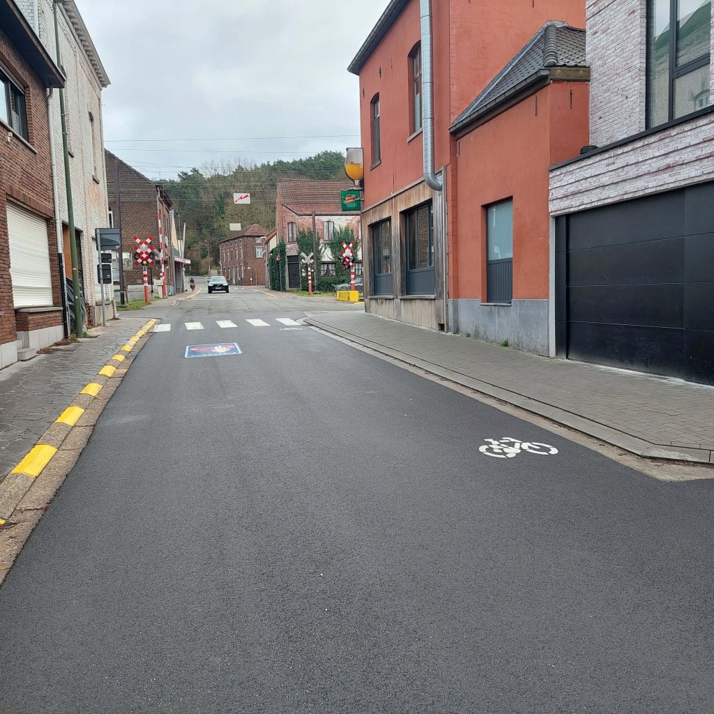 De dienst infrastructuur heeft ook de breedte van de weg heel gedetailleerd laten opmeten. “ De minimaal noodzakelijke wegbreedte voor tweerichtingsverkeer met fietsers op de weg, vrachtverkeer (dagelijkse toelevering Proxy), busverkeer en voetpaden bedraagt 6m tussen de boordstenen + 2 x 1m50 aan obstakelvrije zone (geen voetpadkasten, OV-palen,…) voor voetgangers. Concreet betekent dit dat er moet uitgegaan worden van een minimaal beschikbare obstakelvrije wegbreedte van 9m. De actuele beschikbare wegbreedte in dit deeltraject is erg krap om een dergelijke weginrichting te kunnen realiseren, en ter hoogte van de Stationsstraat is de beschikbare wegbreedte zelfs onvoldoende. “