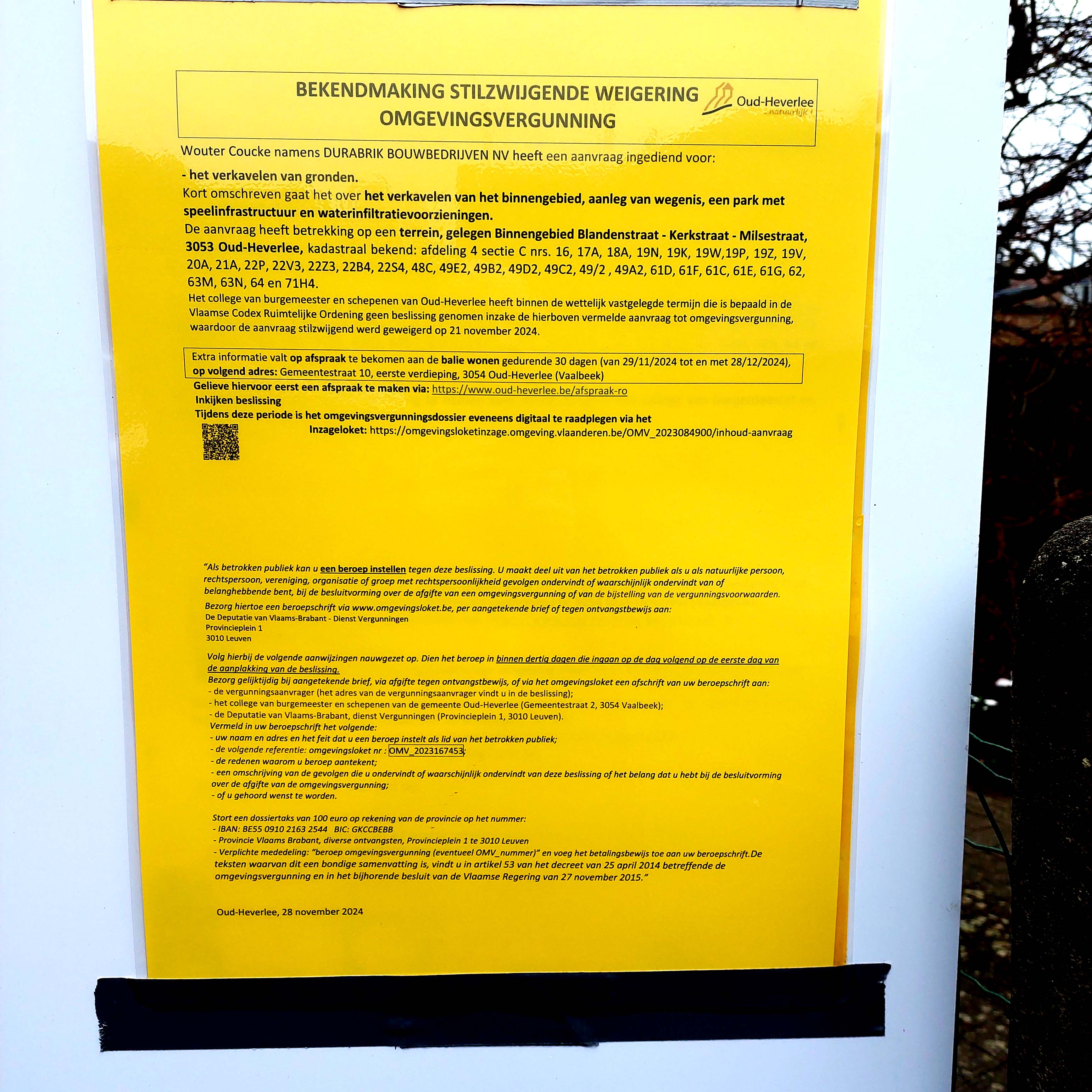 Sinds de verkiezingen is het politiek erg stil rond het mega-bouwproject in Haasrode. Daar zouden 160 woningen worden gebouwd in het binnengebied tussen Kerkstraat, Milsestraat en Blandenstraat. De vorige meerderheid van Groen, Vooruit en Club CD&V kreeg het dossier op de valreep niet afgewerkt. Het plan van de wegenis haalde net na de gemeenteraadsverkiezingen, toen de coalitiewissel al rond was, nog heel nipt een meerderheid in de laatste raadszitting in de oude samenstelling. Maar het afscheidnemende schepencollege, onder druk van de nieuw meerderheidspartners N-VA en Pro OH , raakte het nadien niet meer eens om ook de omgevingsvergunning goed te keuren. De uiterste datum werd overschreden waardoor de vergunning stilzwijgend werd geweigerd.