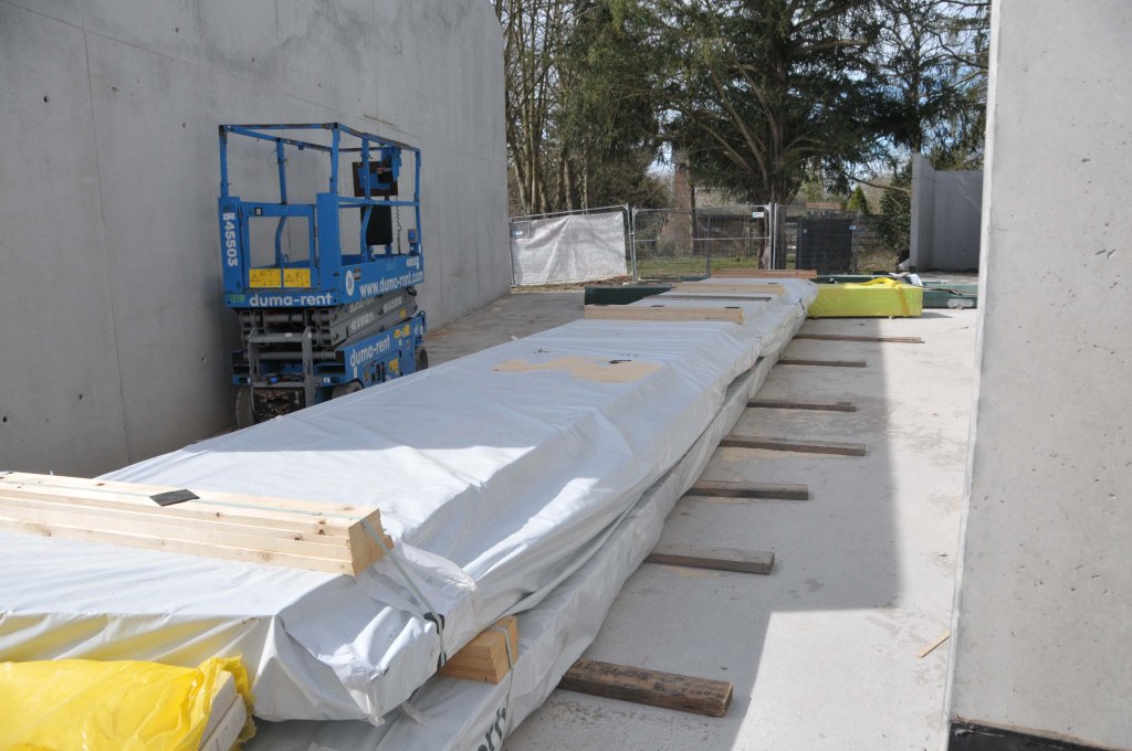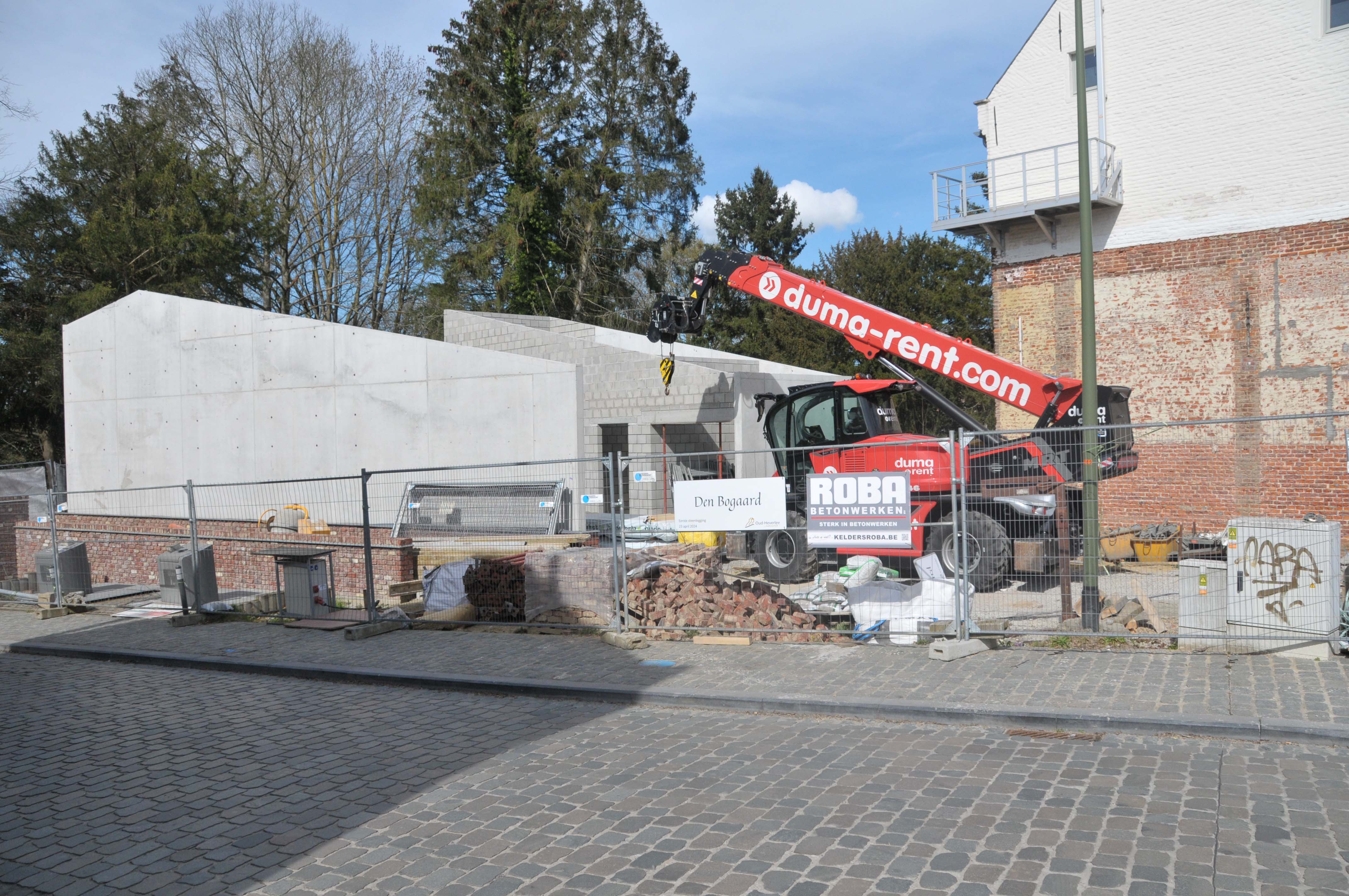 Op 29 januari 2024 gaf de gemeente bevel van aanvang der werken voor de nieuwe zaal. In het bestek was voorzien in een uitvoeringstermijn van 150 dagen. Maar al voor de zomer van 2024 vielen de werken stil. Geruchten deden de ronde dat de Oostenrijkse dakconstructie te zwaar zou zijn voor die dunne steunmuren. En die muren geen geschikte fundamenten hadden. Klopt niet, hoorden we van burgemeester Clerckx. Het ging om een technische discussie tussen de stabiliteitsingenieur en de aannemer over het hechten van de verschillende balken en dakplaten. Moest het nu mechanisch of met epoxy?