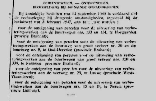 En dat is destijds kennelijk niet gebeurd. De gemeente kon nu geen stukken voorleggen van een duidelijke geldige beslissing in 1959 of 1960. Er is toen wel een onteigeningsplan bekend gemaakt en gepubliceerd als bijlage in het staatsblad. Maar een beslissing over een heldere rooilijn is er toen kennelijk niet genomen. Althans er kon minstens geen stuk worden voorgelegd waaruit dat bleek. En dat is erg vervelend voor toekomstige omgevingsvergunningen langs de Waversebaan of lopende betwistingen. Een geldige omgevingsvergunning vergt een voorafgaande beslissing van de gemeenteraad over de wegenis. En die is blijkbaar in 1959 of 1960 kennelijk niet genomen.
