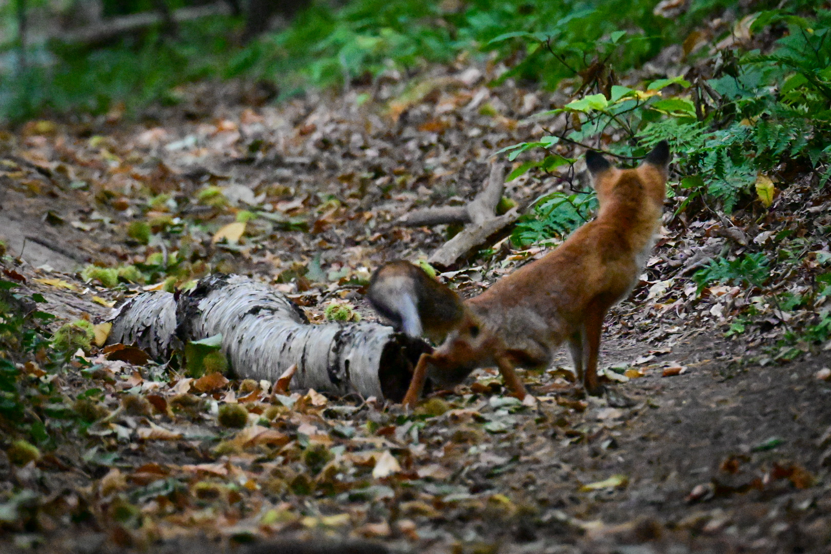 Tijdens een avondwandeling hoorde ik plots veel geritsel in de bladeren. Mijn eerste gedachte: een rode eekhoorn die noten aan het verstoppen was. Maar enkele stappen verder zag ik tot mijn verbazing deze schoonheid 🦊 (foto) rondstruinen. Nel en ik konden ons nog snel achter een boom🌳verstoppen om de rode vos een tijdje te observeren